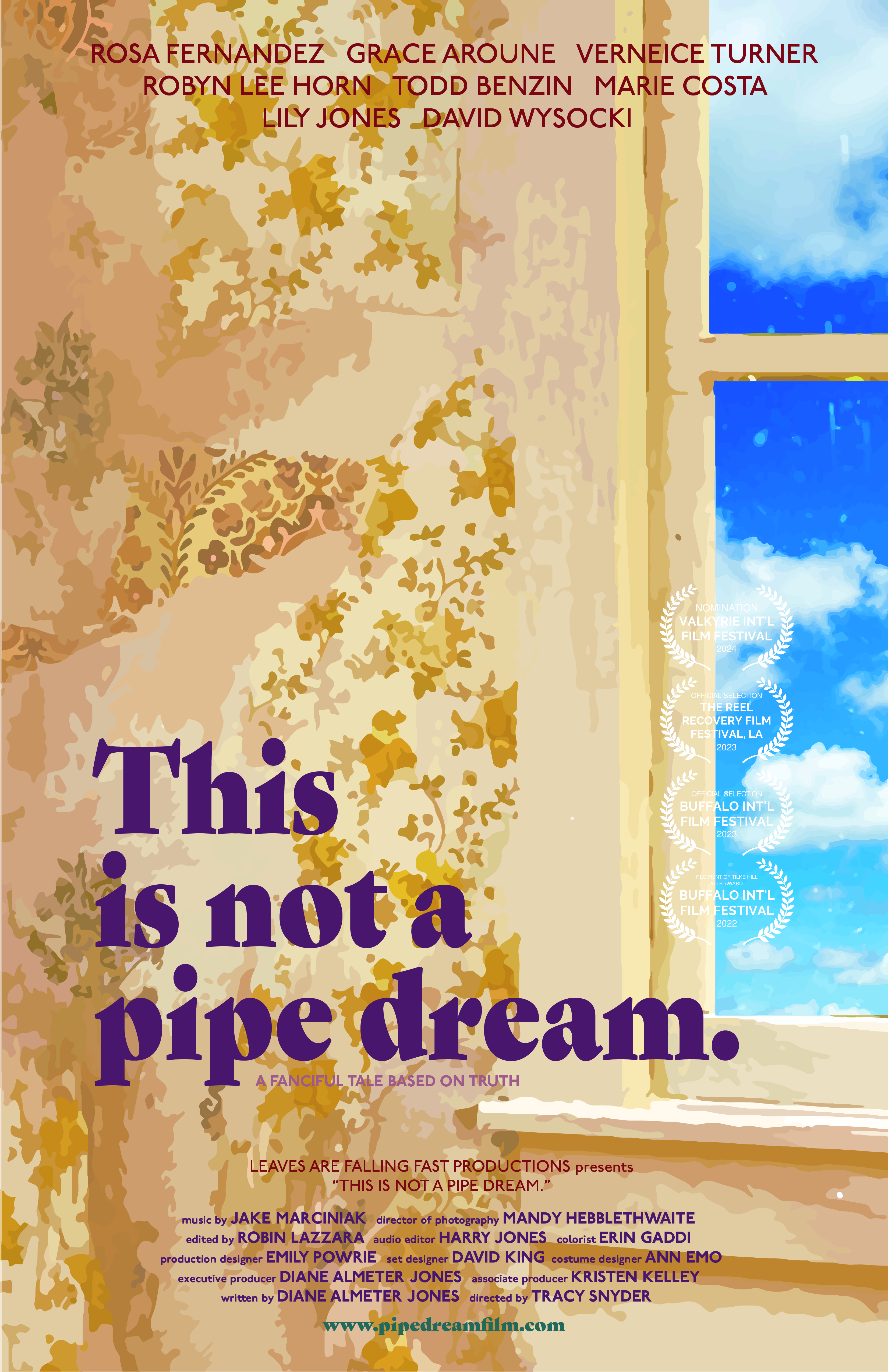 Our short film, This is not a pipe dream., participated in LA at the REEL RECOVERY FILM FESTIVAL, and in Buffalo at THE BUFFALO INTERNATIONAL FILM FESTIVAL. It was also nominated and viewed at the VALKYRIE INTERNATIONAL FILM FESTIVAL.
